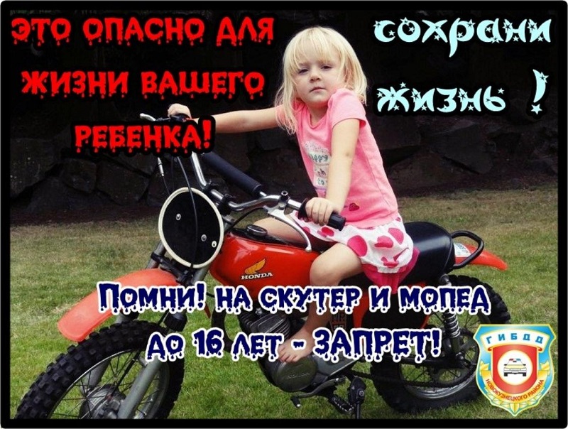 В ГИБДД говорят, что, садясь за руль мопеда или скутера, юные участники дорожного движения не задумываются о своей безопасности. Не думают о ней и их родители, которые не принимают во внимание возраст детей, необходимость наличия водительского удостоверения, навыков управления транспортным средством, а также использование шлемов при езде. Но стоит помнить, что, попав даже в незначительное ДТП, ребенок может получить серьезные травмы, а то и вовсе поплатиться жизнью.