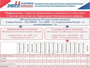 11 сентября на территории Топчихинского района состоится голосование по выборам депутатов Топчихинского районного Совета депутатов седьмого созыва и депутатов сельских Советов депутатов.