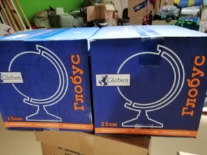 Связавшись с председателем Союза женщин Кузбасса Ириной Алексеевной Крым, удалось найти самый оптимальный вариант. Собранные в нашем районе средства (41 300 рублей) через банк переводятся Ирине Алексеевне Крым. Она закупает на указанную сумму школьные принадлежности, канцтовары и спортинвентарь для ребят из школы №77 и вместе со своей гуманитарной помощью ближайшим рейсом отправляет их в Горловку. На данный момент уже закуплено три комплекта спортивных мячей (футбольный, волейбольный и баскетбольный мячи в каждом комплекте), три комплекта для настольного тенниса (сетка со специальными креплениями, ракетки и комплект мячей). Два теннисных стола обещали отправить вместе с нашими подарками в школу №77 кемеровчане – чтобы сразу можно было укомплектовать две зоны для игры в настольный теннис. Кроме того, были закуплены два больших глобуса для кабинета географии. Для детей закуплены тетради, пластилин, цветная бумага и картон, наборы цветных и простых карандашей, фломастеры, краски, альбомы для рисования и т.д.