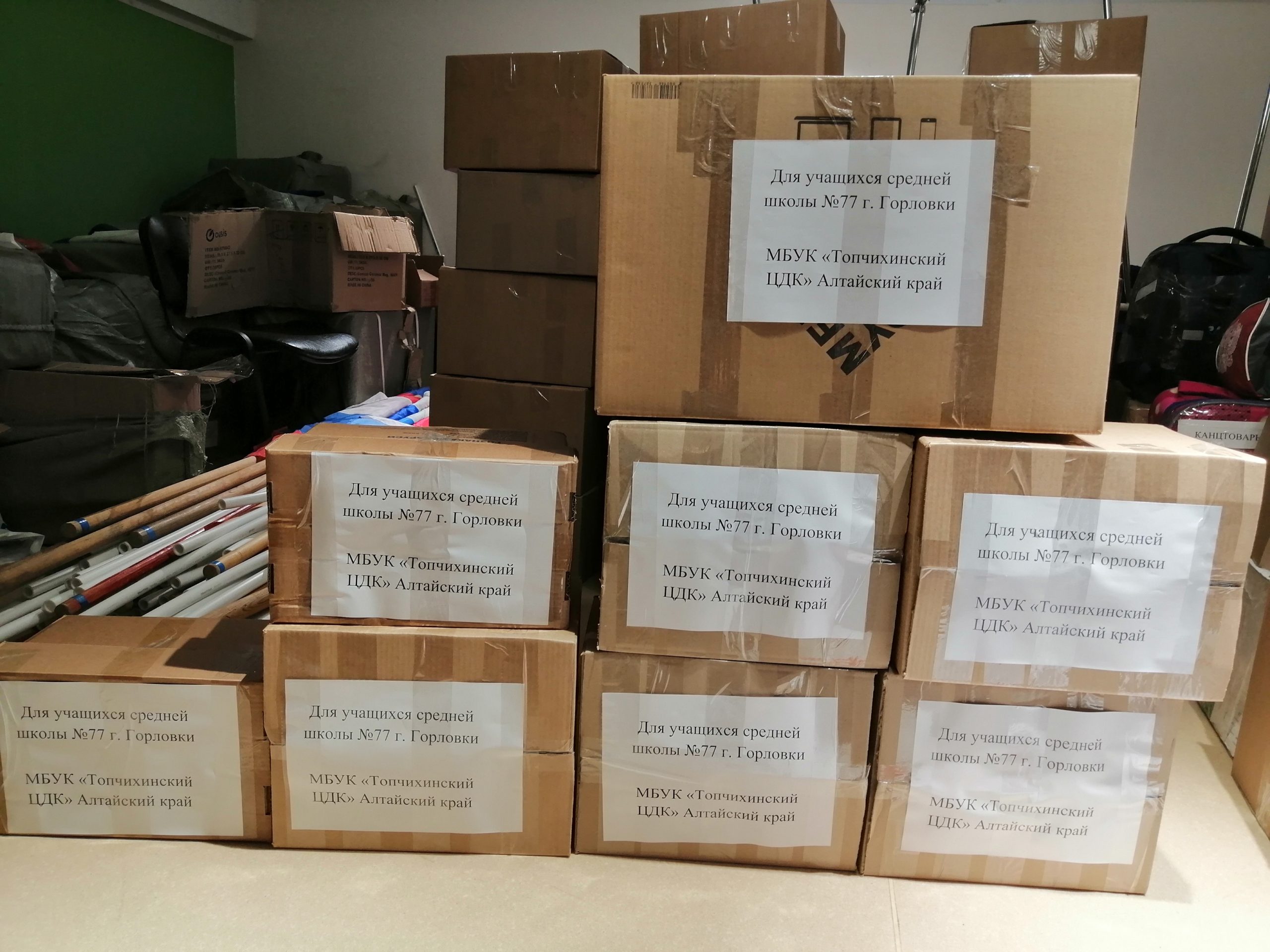 Топчихинское отделение партии ЛДПР, Белояровская, Фунтиковская, Кировская, Переясловская, Ключевская средние общеобразовательные школы, Топчихинская средняя общеобразовательная школа №2, Администрация Топчихинского сельсовета и КГКУ УСЗН по Топчихинскому району сдали на сборный пункт уже закупленные школьные принадлежности и канцелярские товары на сумму 20 000 рублей.