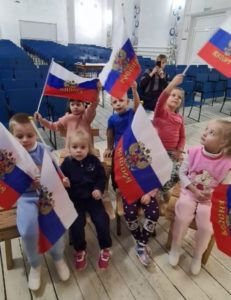 В доступной форме ведущая праздника Стелла Юрьевна Борисова рассказала малышам, что Россия – единая, могучая, гостеприимная страна, которая протягивает руку дружбы и раскрывает свои объятия всем народам, кто пожелает жить на земле мирно и счастливо. И отмечается этот день как день сплочённости, единства и героизма всего народа вне зависимости от происхождения, вероисповедания и положения в обществе.