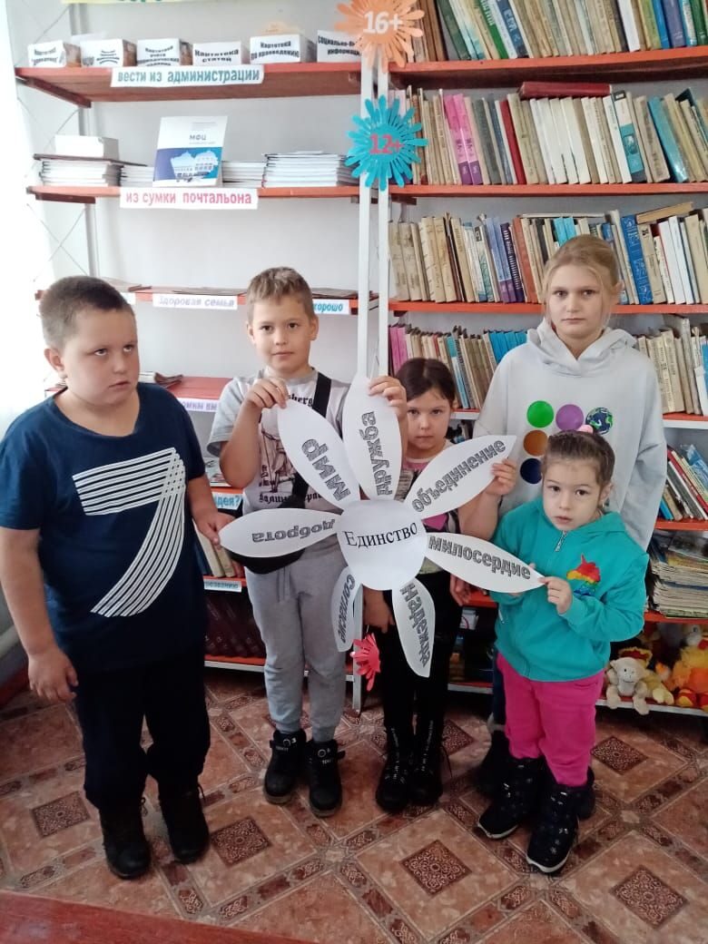 «Дружные дети» – так назывался познавательный урок, который прошёл в библиотеке Песчановского сельского клуба (библиотекарь Надежда Петровна Сундикова). Дети получали содержательную информацию из истории возникновения праздника Дня народного единства, исполнили гимн Российской Федерации, вспомнили главные государственные символы нашей Родины, читали стихи, а также состязались в знаниях и смекалке, отгадывая загадки и отвечая на вопросы, связанные с Россией.