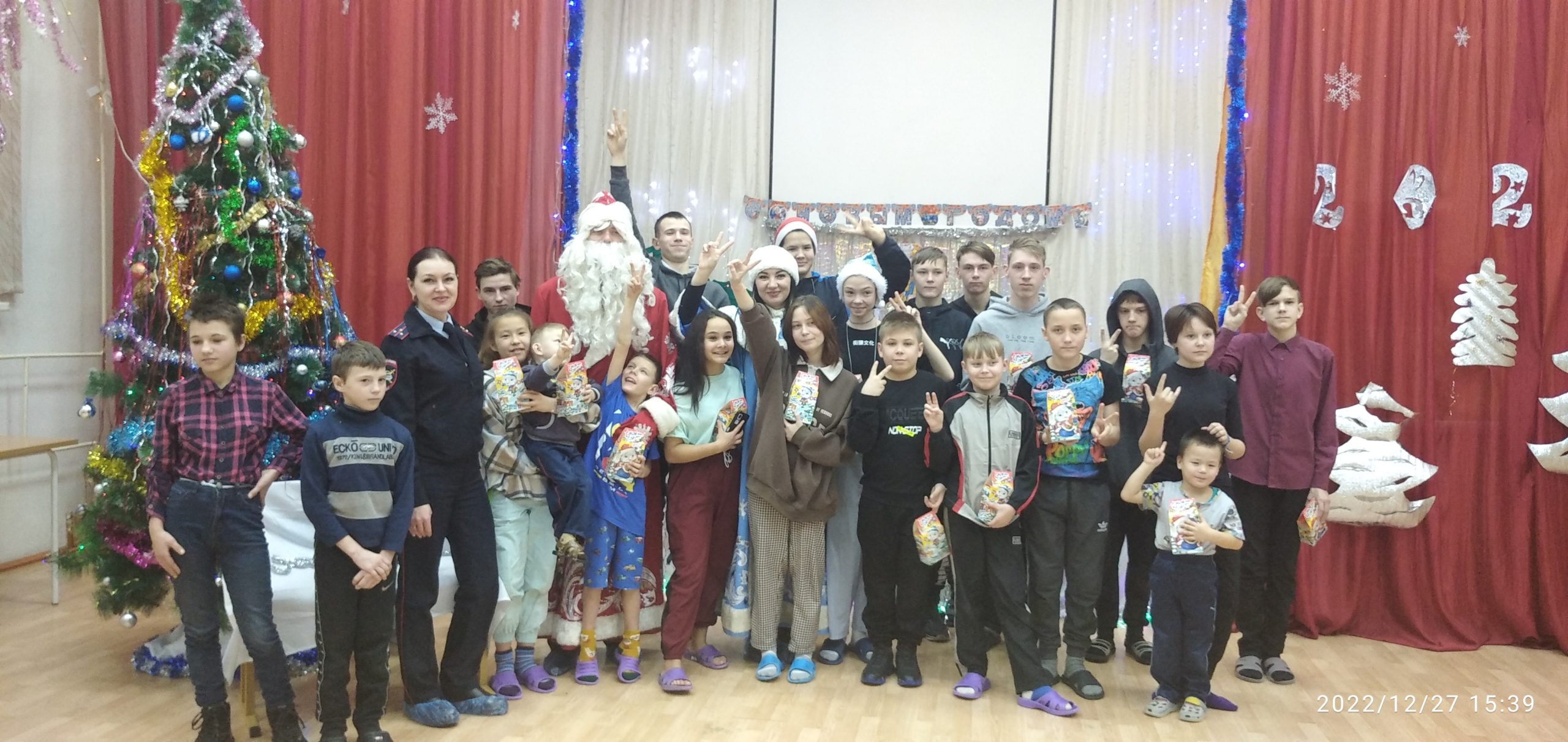 27.12.2022 в рамках проведения Всероссийской акции «Полицейский Дед Мороз» сотрудниками МО МВД России «Топчихинский» совместно с членами Общественного совета при МО проведена встреча с воспитанниками КГБУ «Топчихинский центр помощи детям, оставшимся без попечения родителей». Сотрудники полиции поздравили детей с наступающим Новым годом, вручили сладкие подарки, а также напомнили о соблюдении правил дорожного движения, личной безопасности при нахождении на новогодних мероприятиях и о законопослушном поведении.