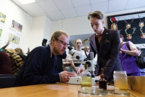«Ночь музеев привлекает большой интерес, все эту акцию знают. В других больших городах проходят акции «Ночь музыки», «Ночь заводов». Нам надо побольше таких мероприятий затягивать. Видите, как люди с удовольствием ходят», — отметил Томенко в беседе со студентами Виктор Томенко посетил музей природы института биологии и биотехнологии Алтайского государственного университета, где студенты вуза ему рассказали о фауне края. Также он посетил Художественный салон-галерею «Турина гора». В Алтайском государственном краеведческом музее глава региона ознакомился с артефактами, найденными на территории Алтайского края. Также он узнал о строении древних курганов. По дороге губернатор общался с горожанами и охотно отзывался на предложения сделать совместные фото. |