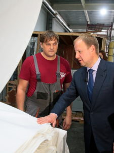 Губернатор Виктор Томенко посетил предприятие ГК «Свит» в Новоалтайске, где производят одеяла, подушки и постельное белье. На производстве губернатор осмотрел цех отбеливания тканей, цех печати на тканях, швейный цех, участок разделения пуха и пера и пообщался с коллективом завода. В том числе он побывал в новом инновационном цехе по производству наполнителя для подушек и одеял из переработанной ПЭТ-тары, который заработает осенью и позволит предприятию не закупать сырье из-за границы и снизить себестоимость изделий. Это яркий пример эффективного импортозамещения.