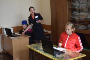 Теоретический экзамен на знание правил дорожного движения оценивала Анастасия Анатольевна Найдюк. Участникам предстояло выполнять электронные задания в специально оборудованном компьютерами кабинете. Перед началом тестирования инспектор по пропаганде безопасности дорожного движения провела подробный инструктаж по работе с программой.