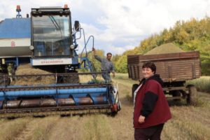 Познакомились и с супругом Галины Николаевны. Он трудился на уборке овса. Его синий «Енисей» ходит по полю до ночной росы, поэтому комбайн Иван Семенович покинул всего на пару минут.  Урожайность, по словам Ивана Морару, около 16-17 ц/га. Хорошо сыплет…