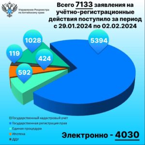 7133 заявлений на учётно-регистрационные действия поступило в Управление Росреестра по Алтайскому краю за период с 29 января по 2 февраля, из них 56% в электронном виде – 4030.