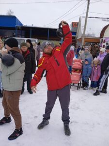 А затем праздник продолжили концертные номера в исполнении народного ансамбля «Россияночка», ансамбля «Калинушка», солистов Юлии Чунихиной, Марии Романовой, Галины Гюнтер, Галины Кряжевой, а также игры, конкурсы, забавы, в которых участники могли помериться силой, ловкостью, хитростью и храбростью. Традиционные масленичные состязания – бой мешками на бревне, столб с подарками, забег в мешках, гири, поедание блинов на скорость, конкурс частушек – собрали немалое количество желающих.