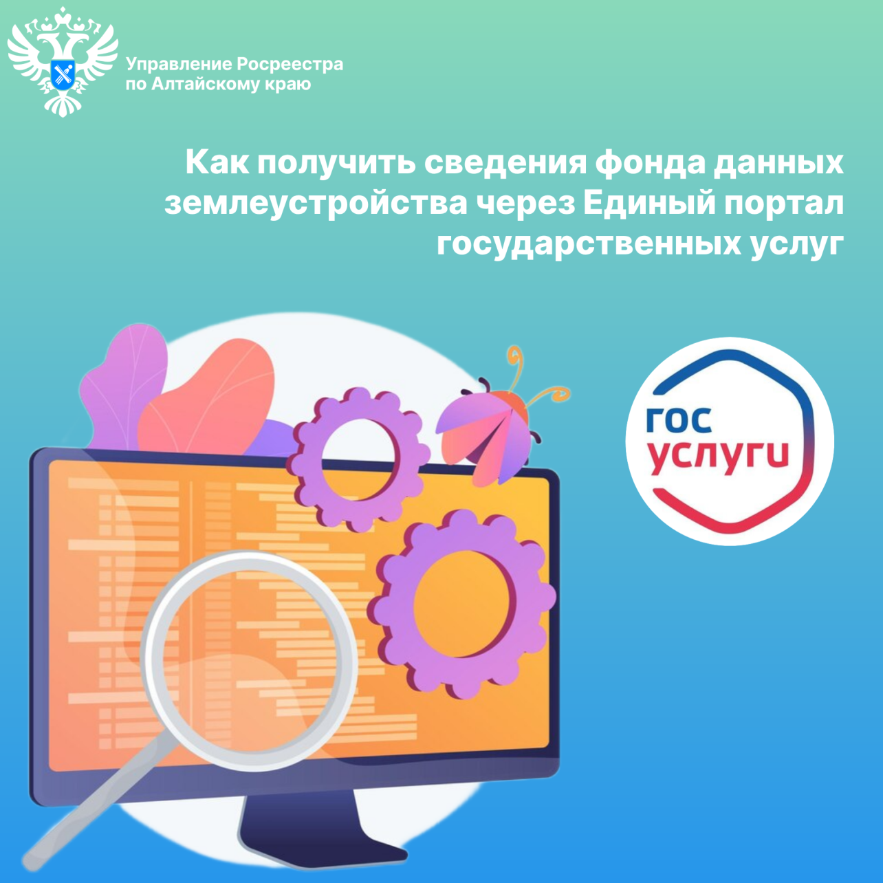 Соответствующее заявление на ЕПГУ можно подать, пройдя по ссылке: https://gosuslugi.ru/600447/1/form либо в главном меню портала выбрать раздел «Стройка. Недвижимость». Далее в разделе «Популярные услуги» выбирать подраздел «Предоставление материалов и данных государственного фонда данных, полученных в результате проведения землеустройства». После чего пошагово заполнить форму заявления и направить его на исполнение.