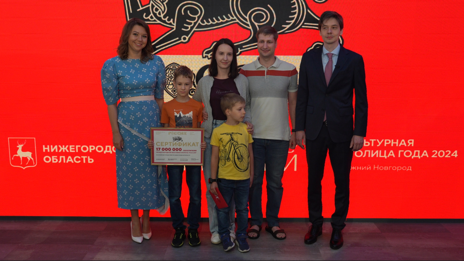Гости получили подарки от Выставки «Россия» и Правительства Нижегородской области. В торжественной обстановке им вручили сертификат на трехдневное путешествие в Нижегородскую область, организованное АНО «Агентство гостеприимства Нижегородской области».