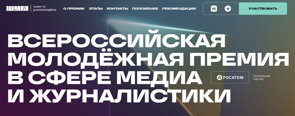 25 октября в Национальном центре «Россия» состоится деловая программа в сфере медиа и журналистики, а также пройдет торжественная церемония награждения финалистов Всероссийской молодежной премии в сфере медиа и журналистики «ШУМ».